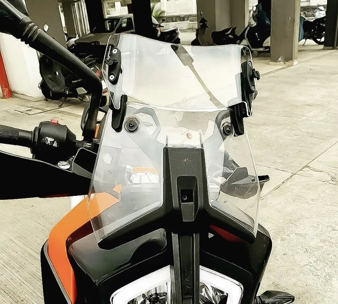 A profile specifically made for the short adventure windscreens of the KTM 250/390/790 Adventure. The ER 740 shields the rider against the high velocity air stream by using the lip extender principle.